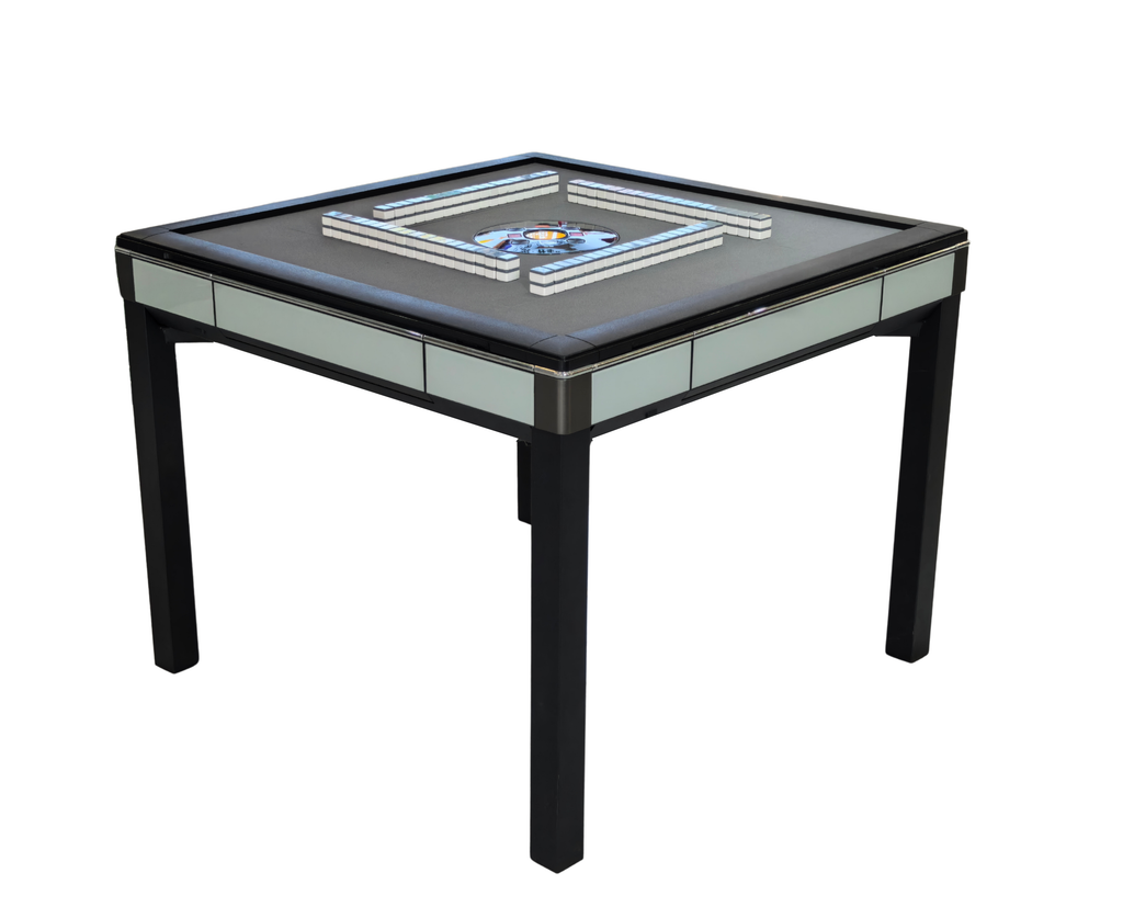 The Skyline Elite 30 is a premium automatic Mahjong table designed exclusively for American Mah Jongg players. Engineered with precision Taiwanese craftsmanship, this model features a striking black glass table cover paired with a light blue glass frame, delivering a clean, modern aesthetic that elevates any game room.