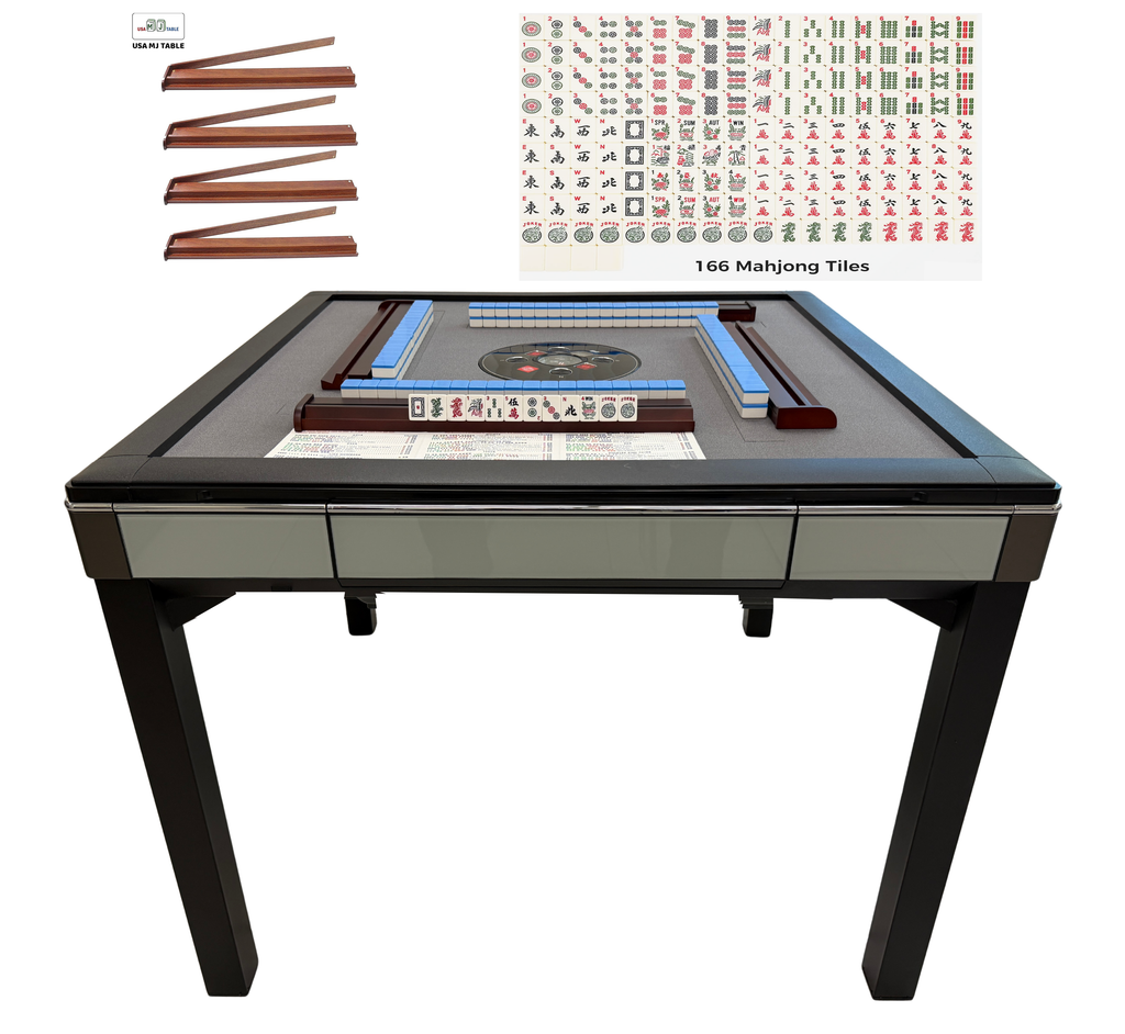 To complement its modern glass design, the table includes beautifully crafted wooden racks and pushers, blending classic Mah Jongg tradition with contemporary style while ensuring smooth, effortless gameplay.